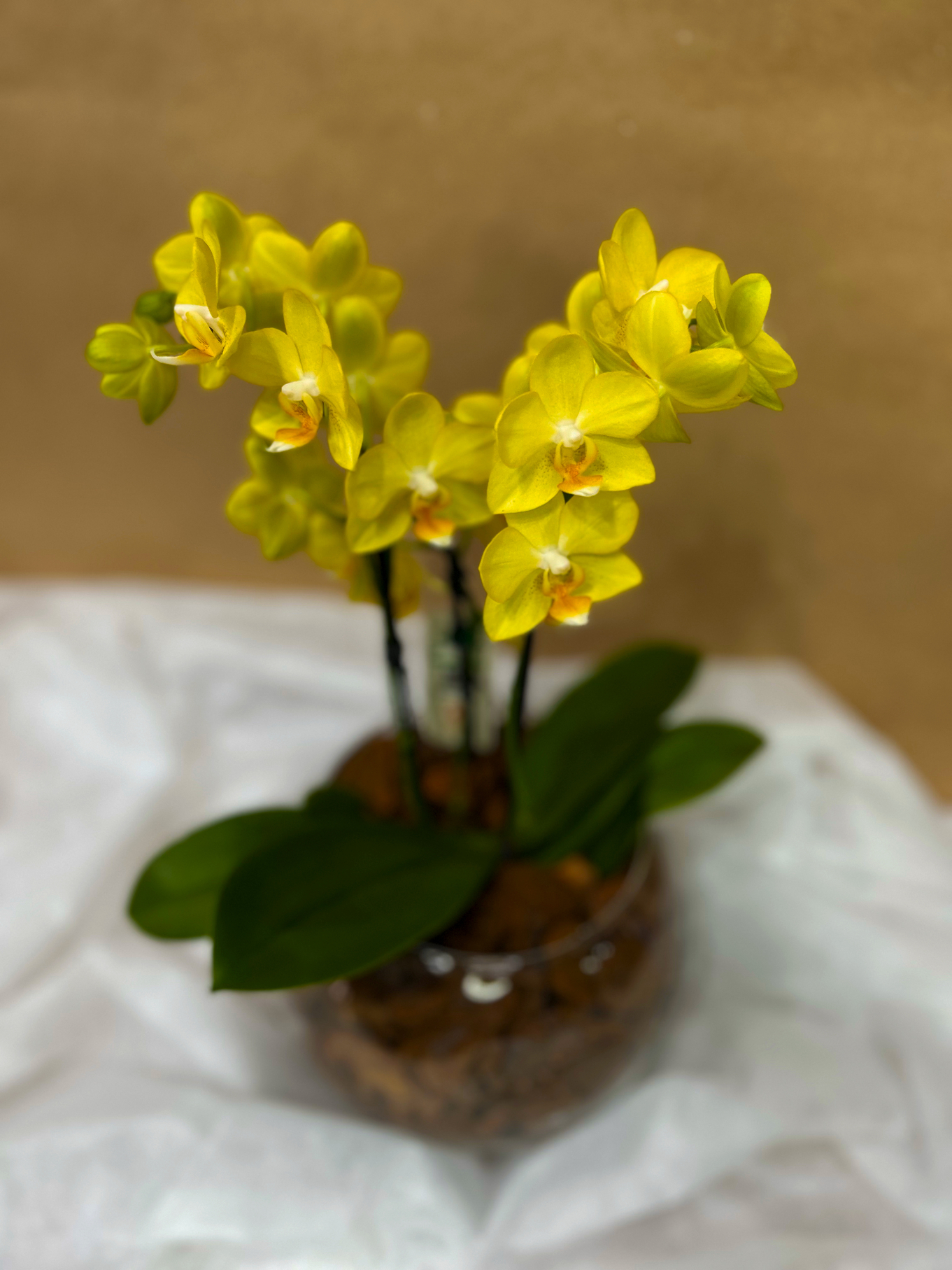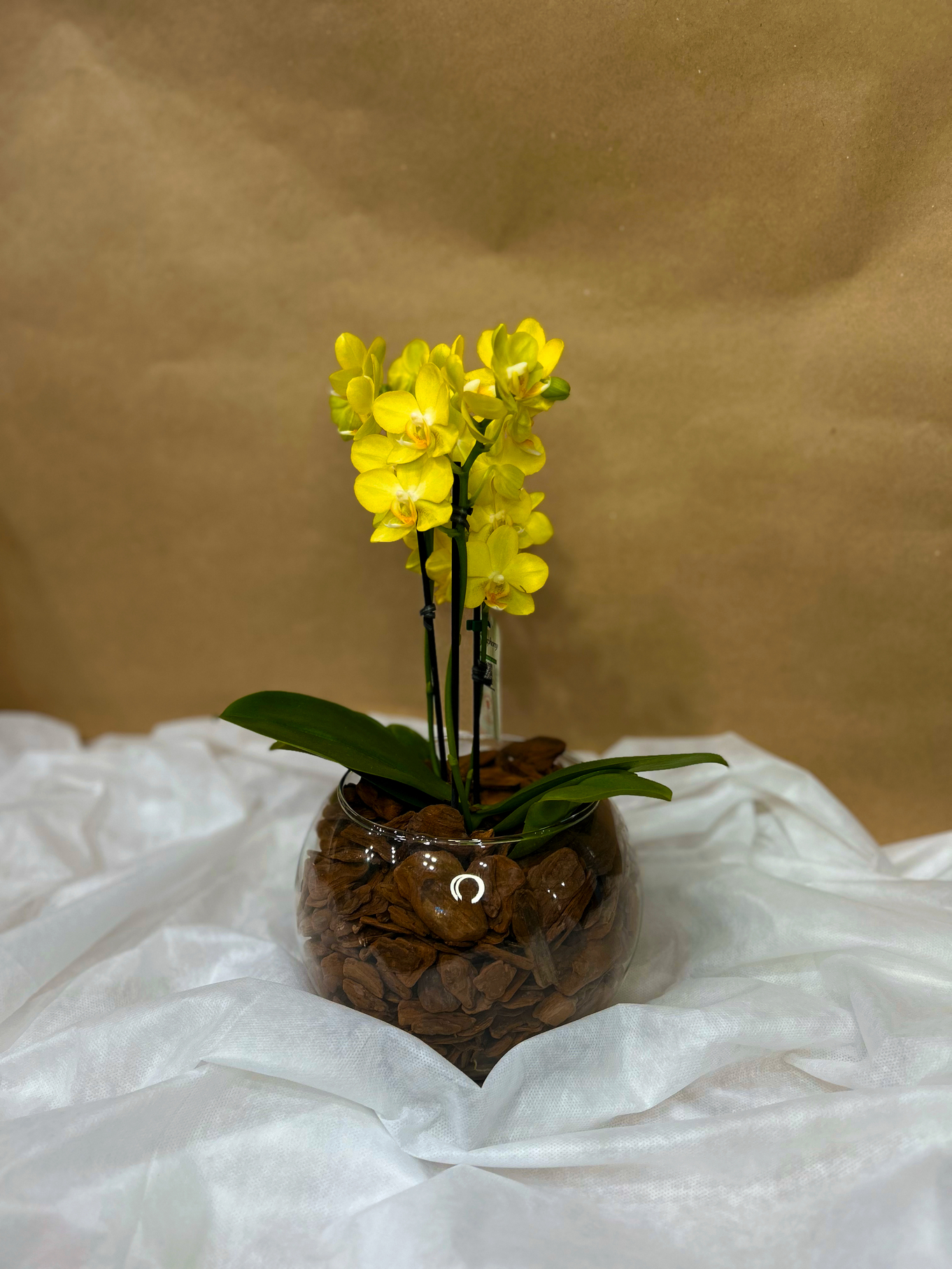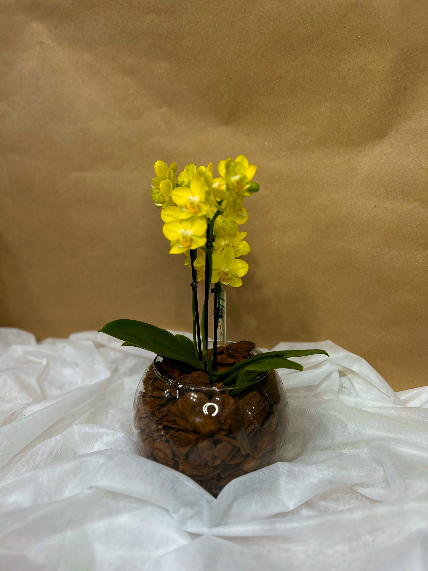 A mini orquídea é cultivada em um vaso compacto, que realça sua beleza natural e facilita sua colocação em mesas, prateleiras, ou no escritório, proporcionando uma atmosfera acolhedora e elegante.